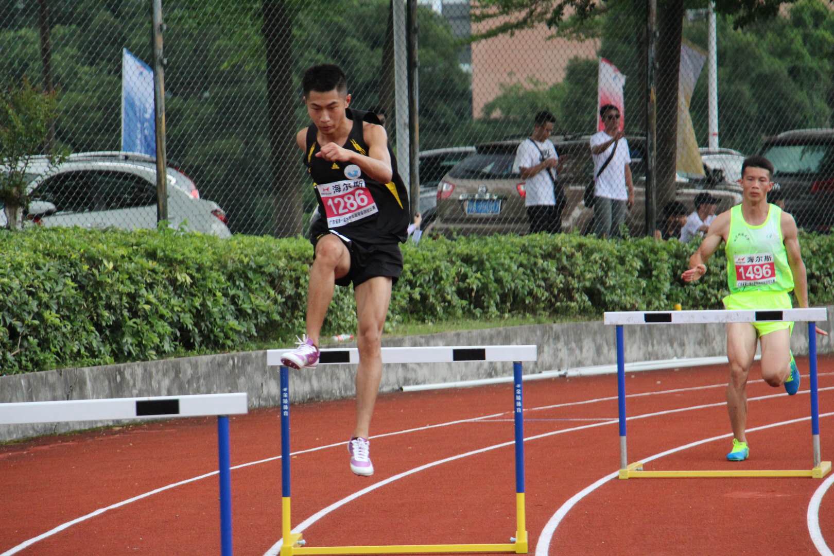 姚旭同学参加男子甲组400米栏赛过栏瞬间