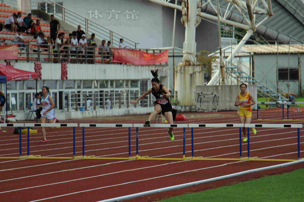 梁桂凤同学参加女子甲组400米栏赛精彩瞬间