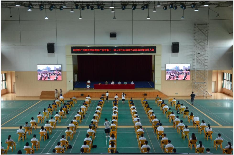 5月6日下午,学校在体育馆三楼召开我校参加广东省第十一届大学生运动会代表团成立暨动员大会,会议由代表团团长唐强荣副校长主持,参加大会的有全体代表团成员,共132人,会场气氛庄严而隆重。
