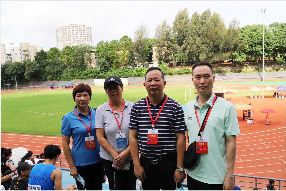 6月22日上午,我校第十一届省大运会代表团副团长徐长春以及秘书长肖亚玲等4人前往赛场为教练员运动员们加油鼓劲。