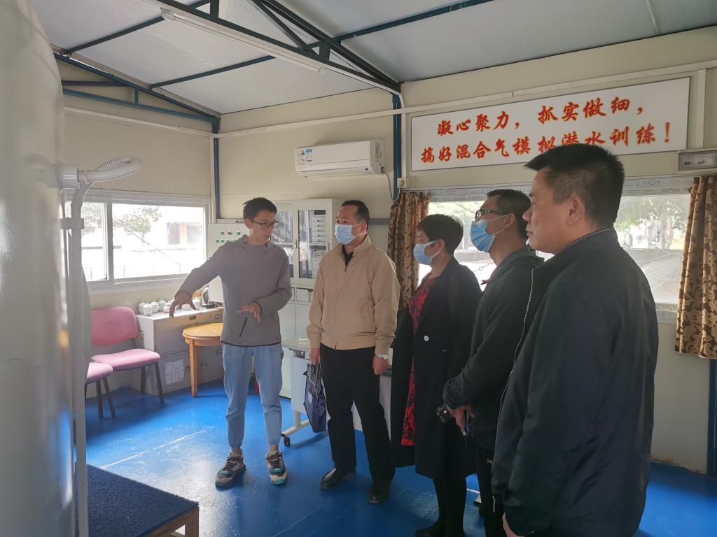 在广州潜水学校党总支副书记校长林铭津、党总支组织委员高级工程师陈水开等领导和老师的带领下,公体部领导参观了学校混合气潜训练模拟器、潜水训练塔群、减压舱、潜水器材室等实践教学设施设备,观摩了潜水教学训练现场。之后,到会议室观看了学校宣传视频,和潜水学校领导和教练就潜水课程的设置、教学安排、设备的规范管理、操作使用等进行了深入的交流,为我校开设潜水课程取得了宝贵的经验。