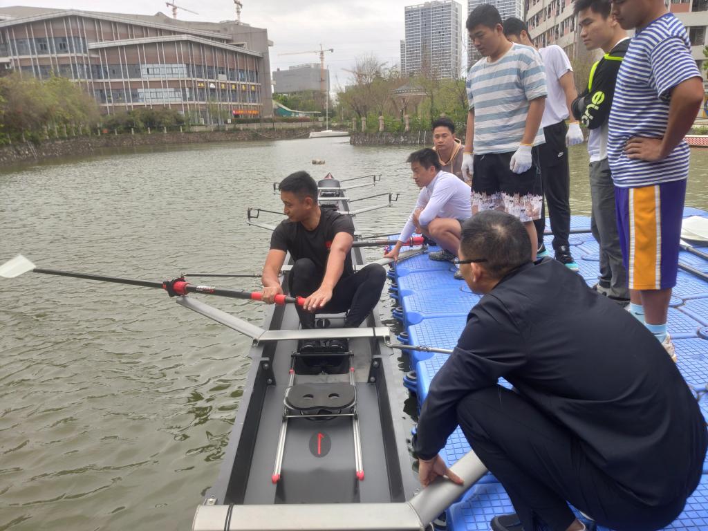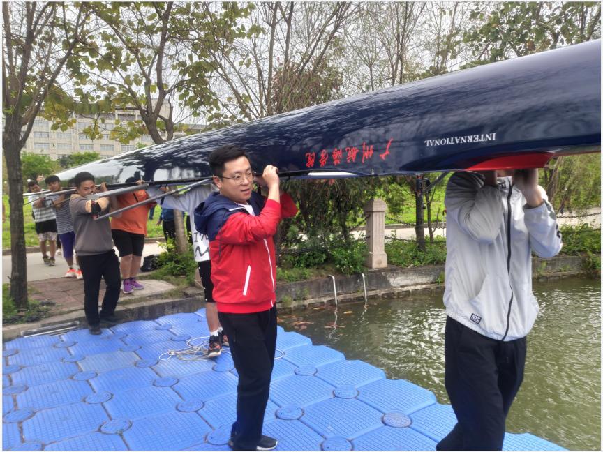 下午,张教练现场指导管理员完成对赛艇的拼装,并召集了部分航海技能大比武训练的同学一道将赛艇搬运到人工湖,开展了体验式教学。培训期间,张教练从专业的角度对我们介绍了赛艇的基本架构、赛艇的材料材质、赛艇的价格级别、赛艇的维护保养和赛艇运动的划桨技术。培训结束后,公体部主任肖亚玲对赛艇的管理、维护保养及存放提出了严格要求。