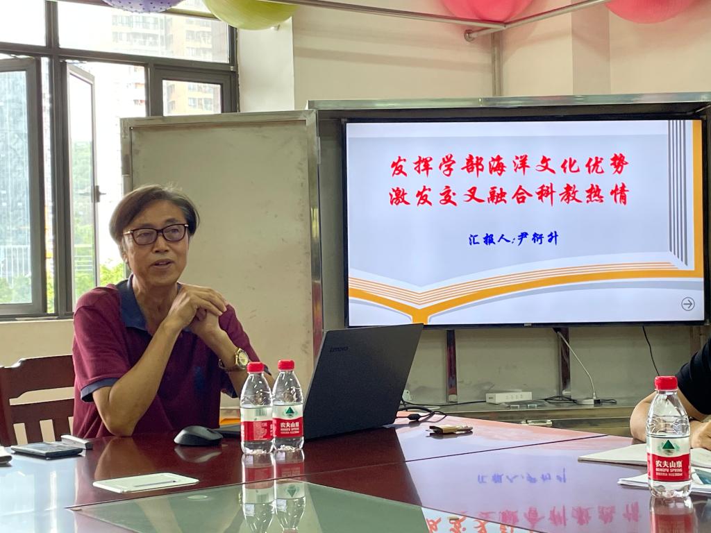 (公共体育教学部供稿)4月28日下午,体育馆二楼会议室,应公体部邀请,我校尹衍升教授在百忙之中向公体部全体教职工作了题为“发挥学部海洋文化优势 激发交叉融合科教热情”的讲座。讲座由公体部主任肖亚玲教授主持。