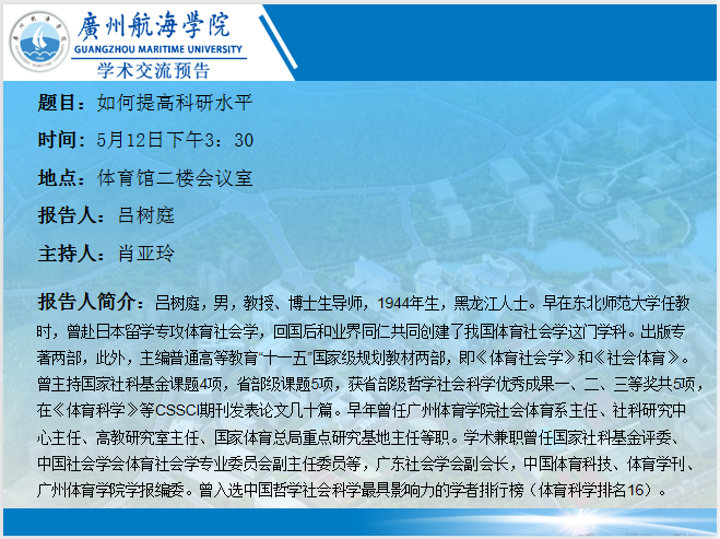 吕树庭学术讲座预告:如何提高科研水平