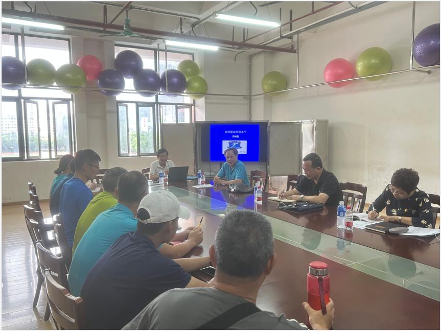(公共体育教学部供稿)5月19日下午,体育馆二楼会议室,应公体部邀请,广州体育学院吕树庭教授在百忙之中向公体部全体教职工作了题为“如何提高科研水平”的讲座。讲座由学校党委副书记招乐辉教授主持。