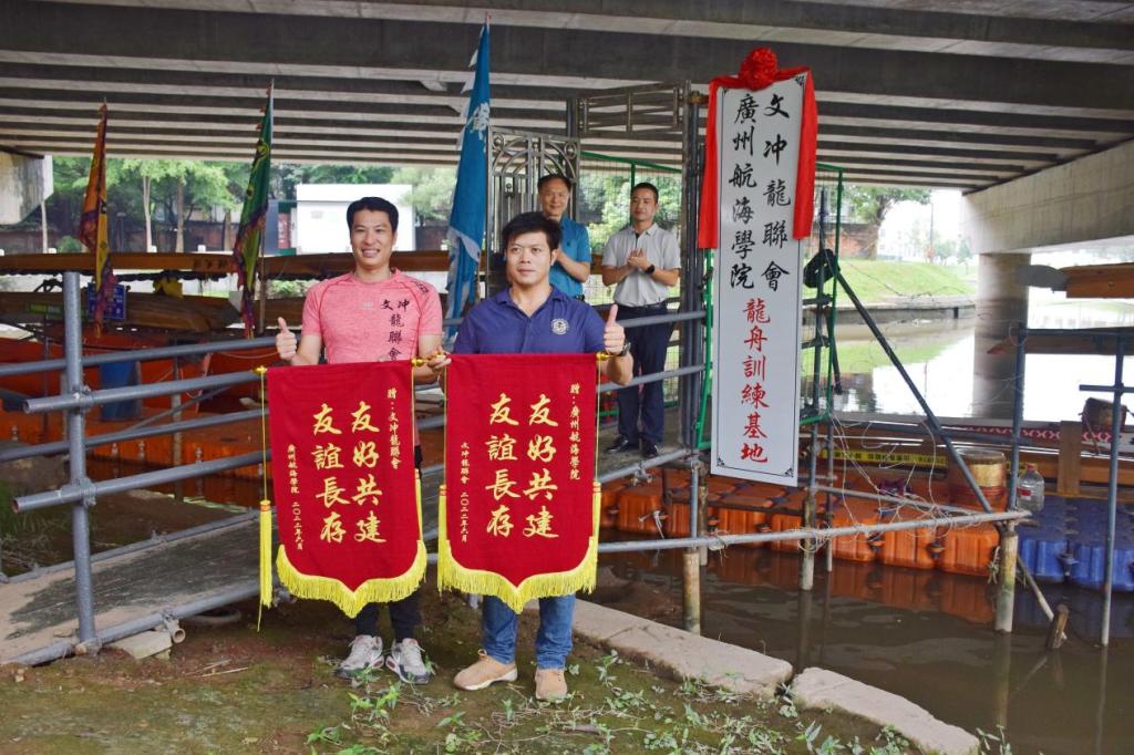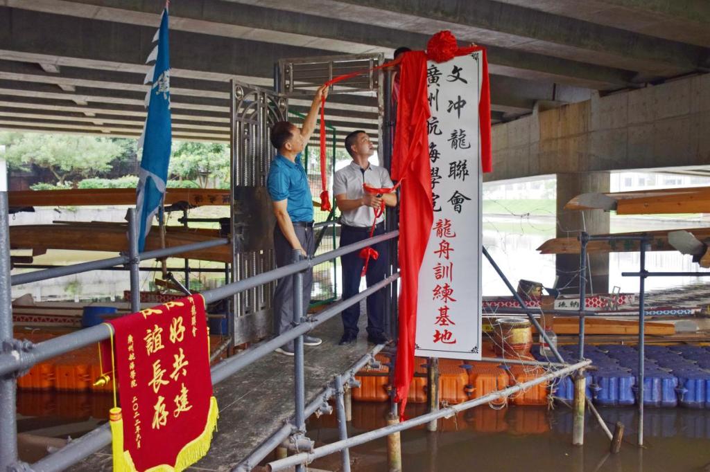 (公共体育教学部供稿)7月6日上午,我校和黄埔区文冲街道文冲社区合作共建的“中国·yl88858永利(Macau)股份有限公司-Official Website、文冲龙舟会龙舟训练基地”在文冲河畔挂牌成立。学校党委副书记、纪委书记招乐辉与文冲社区第一书记罗柳民分别代表共建单位揭牌和致辞。学校海运学院、公体部、团委与文冲街道、文冲社区的等相关领导出席本次挂牌仪式。