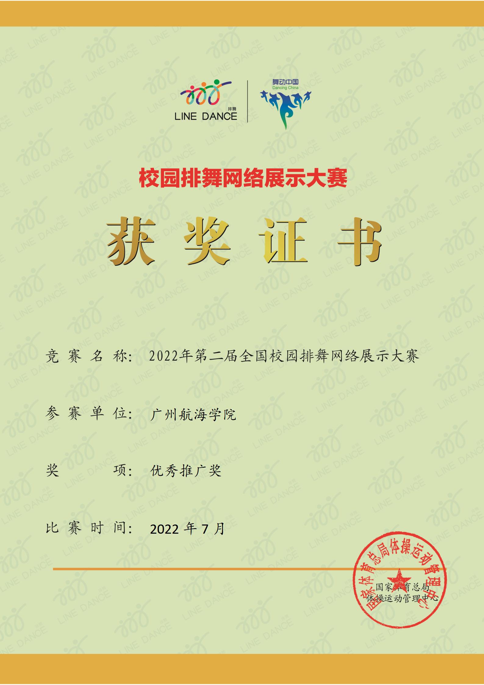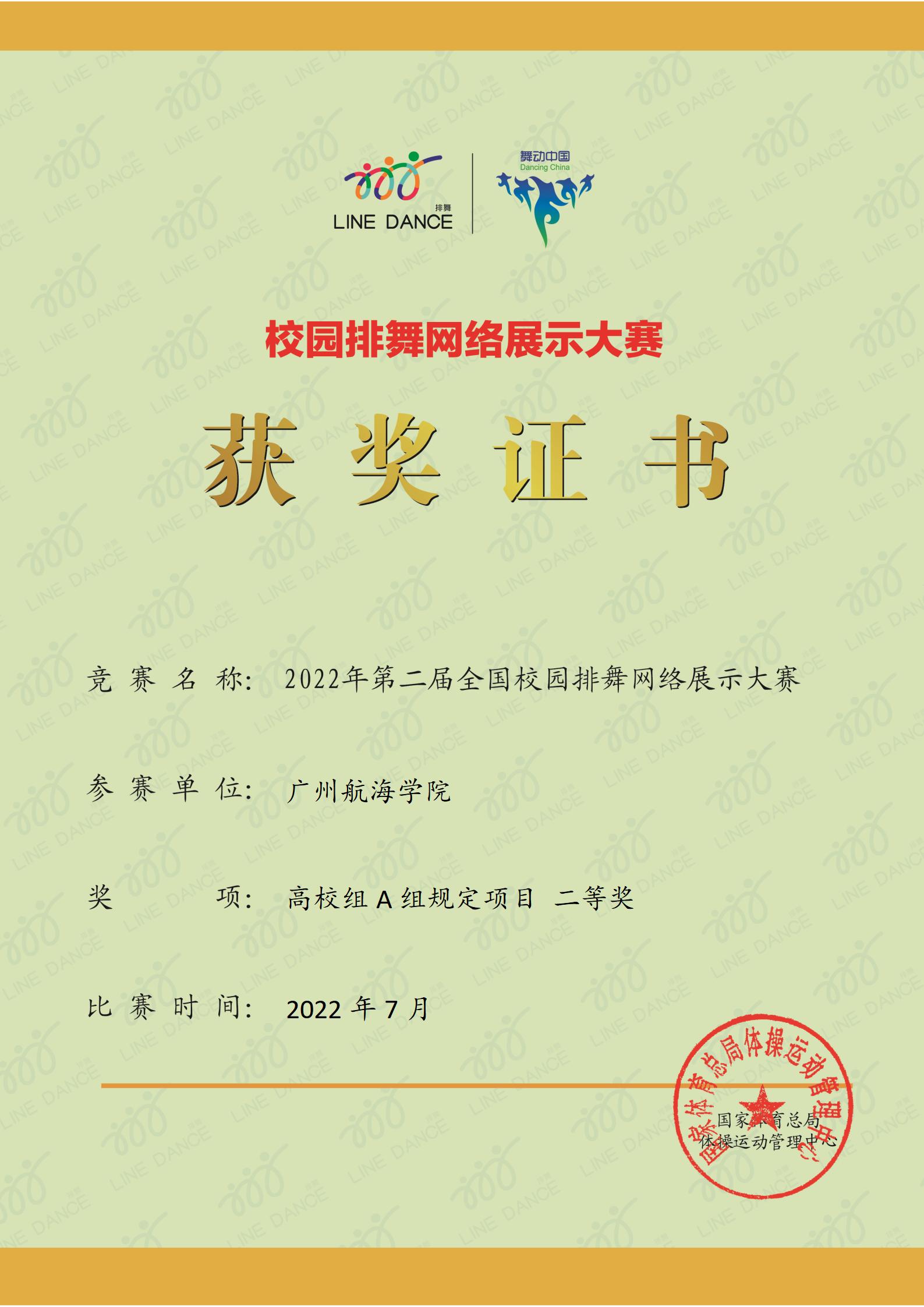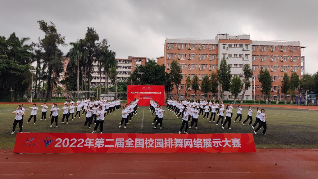本届赛事于2022年5月份开始启动,比赛采用网络形式,声势浩大,共吸引了全国各省市区的254支队伍,近5万学生参赛。李冰老师积极组织报名,经过严挑细选出一百名学生,编排舞蹈《我和我的国》,参加了高校A组比赛。在如此大的国家级比赛平台上,与华东、华中、华南、华北、西北、西南、东北七个地区30多个省、自治区、直辖市的200多所高校的参赛队进行激烈比拼,最终斩获了二等奖。