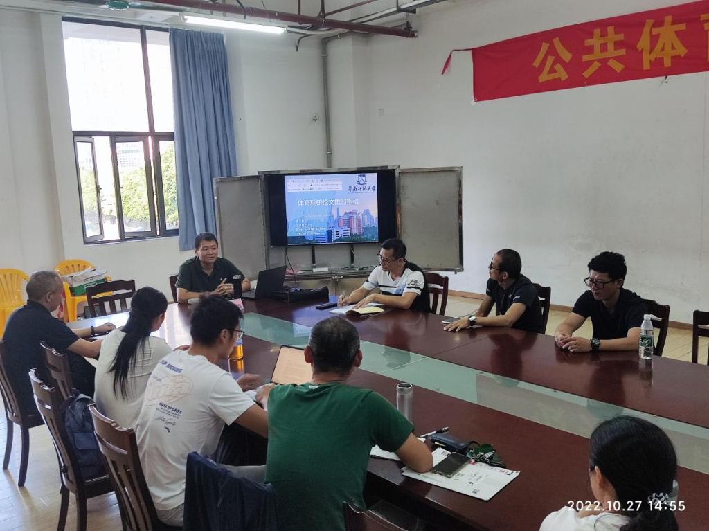 (公共体育教学部供稿)应公体部邀请,10月27日下午,华南师范大学《体育学刊》编辑谭广鑫博士,在体育馆二楼会议室为公体部中、青年教师作了题为“体育科研论文撰写指引”的学术讲座,讲座由贺泽江副主任主持。