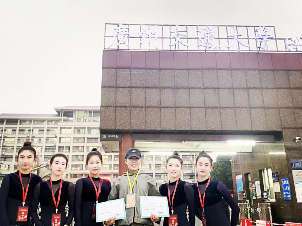 艺术体操既有芭蕾舞、现代舞的精华,又糅合了民间舞和杂技的元素,美与力量感兼具,对于选材有着极高要求。经层层选拔,最终来自外语学院的廖丁薇、航运经贸学院刘顺、艺术设计学院胡蝶、国际邮轮游艇学院李硕、土木工程管理学院许昕5人成功入选。入选后,运动员克服学习和训练任务的各种冲突问题,认真参加每一次训练,在教练员的严格要求和精心指导下,体能练习、身韵体态调整、动作套路设计、托举演练、队形排练、走位卡点预演等训练都一丝不苟,精益求精。运动员们的努力与付出,换来了她们的成长与收获,比赛当天,我校运动员与来自广州、深圳、珠海、中山、东莞、汕尾、湛江、肇庆、佛山等9个地市的68支队伍804名艺术体操精英齐聚顺德容桂体育中心,共同角逐艺术体操的荣耀,经过激烈拼搏,终于拿下了大学组6级规定动作一等奖和大学组7级规定动作一等奖。