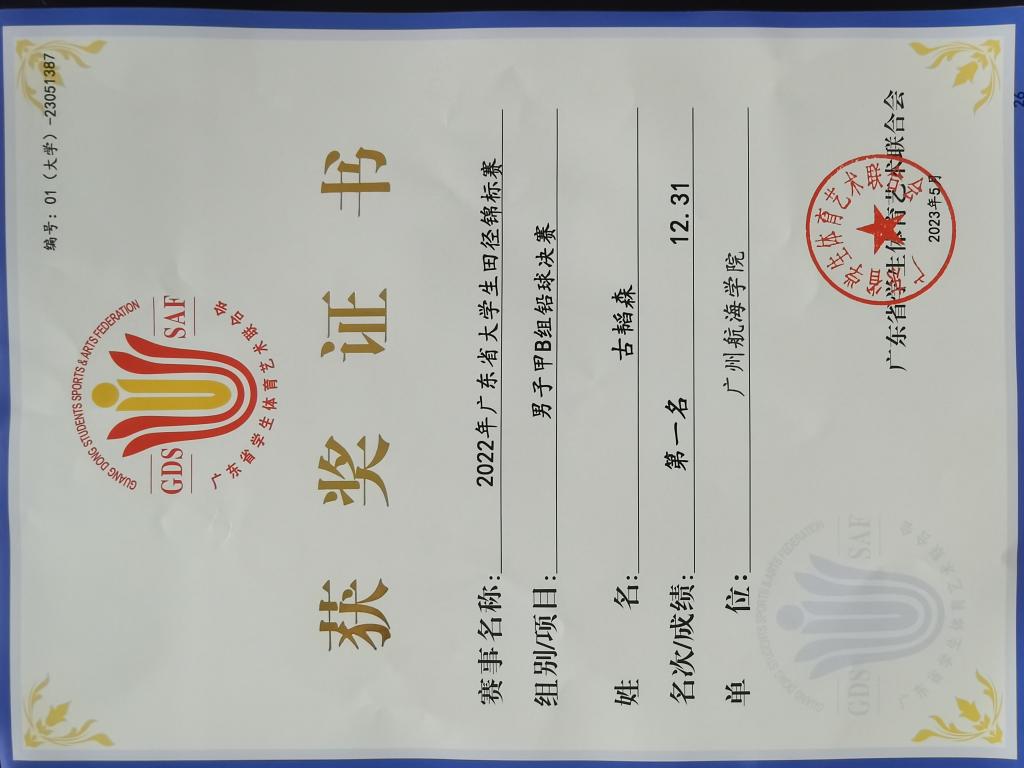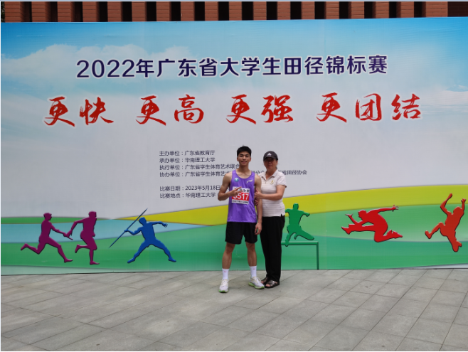(公共体育教学部供稿)因疫情延迟的2022年广东省大学生田径锦标赛于2023年5月18日至21日在华南理工大学(五山校区)举行,我校田径队在领队于继岭老师和教练蔡华老师的带领下,参加了大学甲B组7个项目比赛,斩获4个名次,最为可喜的是来自信通学院的古韬森获男子铅球第一名,取得了我校2013年升本以来参加广东省大学生田径比赛的首枚金牌!