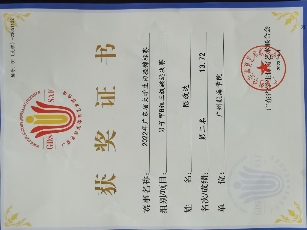 男子三级跳远第二名 |
