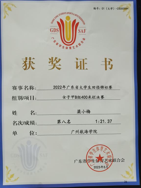 本次赛事由广东省教育厅主办、广东省学生体育艺术联合会执行、华南理工大学承办,有来自省内114所高校的1994名运动员参加。我校田径队参加了大学甲B组的男子铅球、铁饼、标枪、三级跳远、400米、400米栏、5000米和女子400米栏的比赛。在比赛中,我校运动员在教练的鼓励和专业指导下,不畏炎热酷暑,顽强拼搏,发挥出色,终获佳绩!