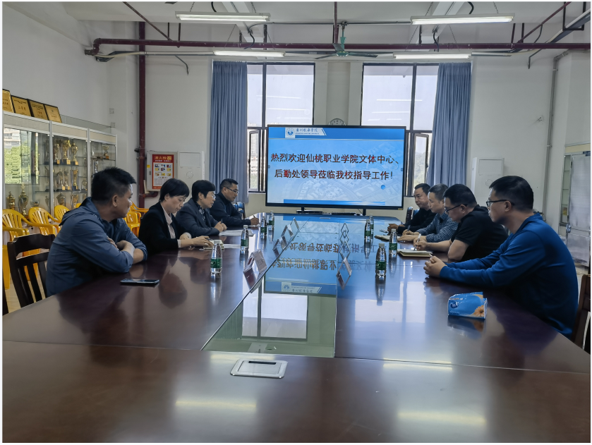 (公共体育教学部、后勤管理处供稿)11月28日下午,湖北仙桃职业学院大学生文体中心主任谢先伟、后勤处处长饶剑辉等一行4人来我校的调研,公体部主任肖亚玲、后勤管理处处长廖姜文在体育馆二楼会议室热情接待,与客人进行了座谈交流,公体部副主任贺泽江、张立新参加。