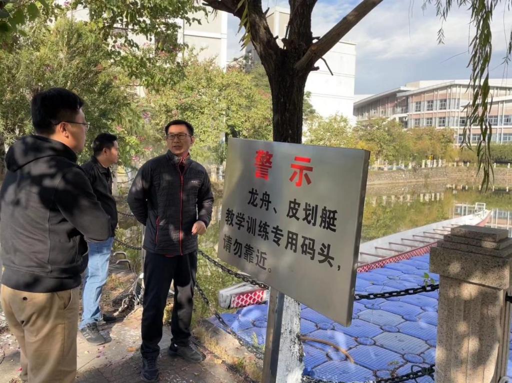 检查发现,体育场馆器材设施整体完好,但仍存在个别安全隐患问题,现场进行了处理,对于不能现场处理的,要求贴上警示标语,及时组织维修或报送后勤管理处维修科申请尽快维修修缮。检查中,贺泽江副主任就环境卫生、设施设备的维护保养等向各片区管理员提出了具体的整改措施,要求及时整改到位并加强日常监管力度。