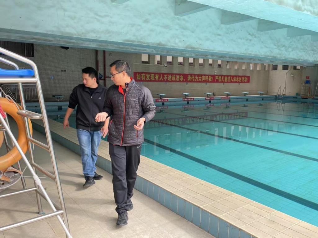 (公共体育教学部供稿)元旦将至,为切实做好节日期间体育场所各项安全工作,有效防范各类安全事故的发生,12月28日上午,公体部副主任、场馆中心主任贺泽江带领场馆管理员,对我校南北校区室外运动场、大学生体能训练中心、游泳池、跳水池、体育场馆、器材室和库房进行了一次安全大检查。