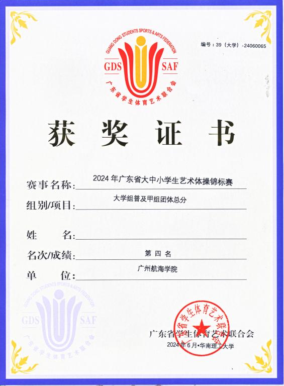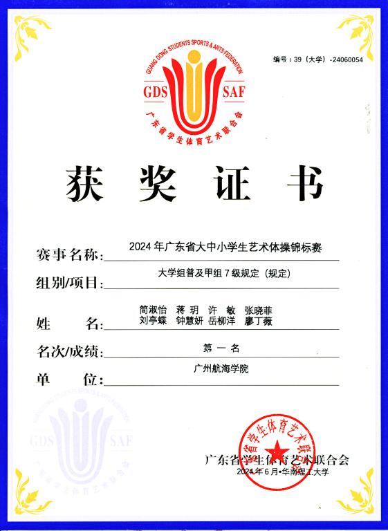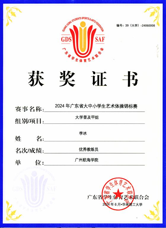 (公共体育教学部、校团委供稿)由广东省教育厅指导、广东省学生体育艺术联合会主办的2024年广东省大中小学生艺术体操锦标赛于2024年5月31日至6月2日在华南理工大学举行。我校学生艺术体操队在李冰老师的带领下,夺得了大学组普及甲组7级规定项目第一名和大学组普及甲组团体总分第四名,李冰老师被评为优秀教练员。