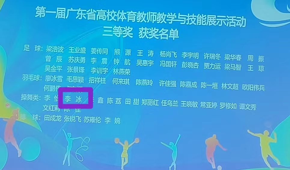 (体育学院供稿)2024年7月1日至7月3日,由广东省教育厅主办的第一届广东省高校体育教师教学与训练技能展示活动在华南理工大学(五山)校区举行,共有来自全省91所高校的146名体育教师参加。我校体育学院李冰老师参加了此项展示活动,荣获青年组操舞类项目三等奖。