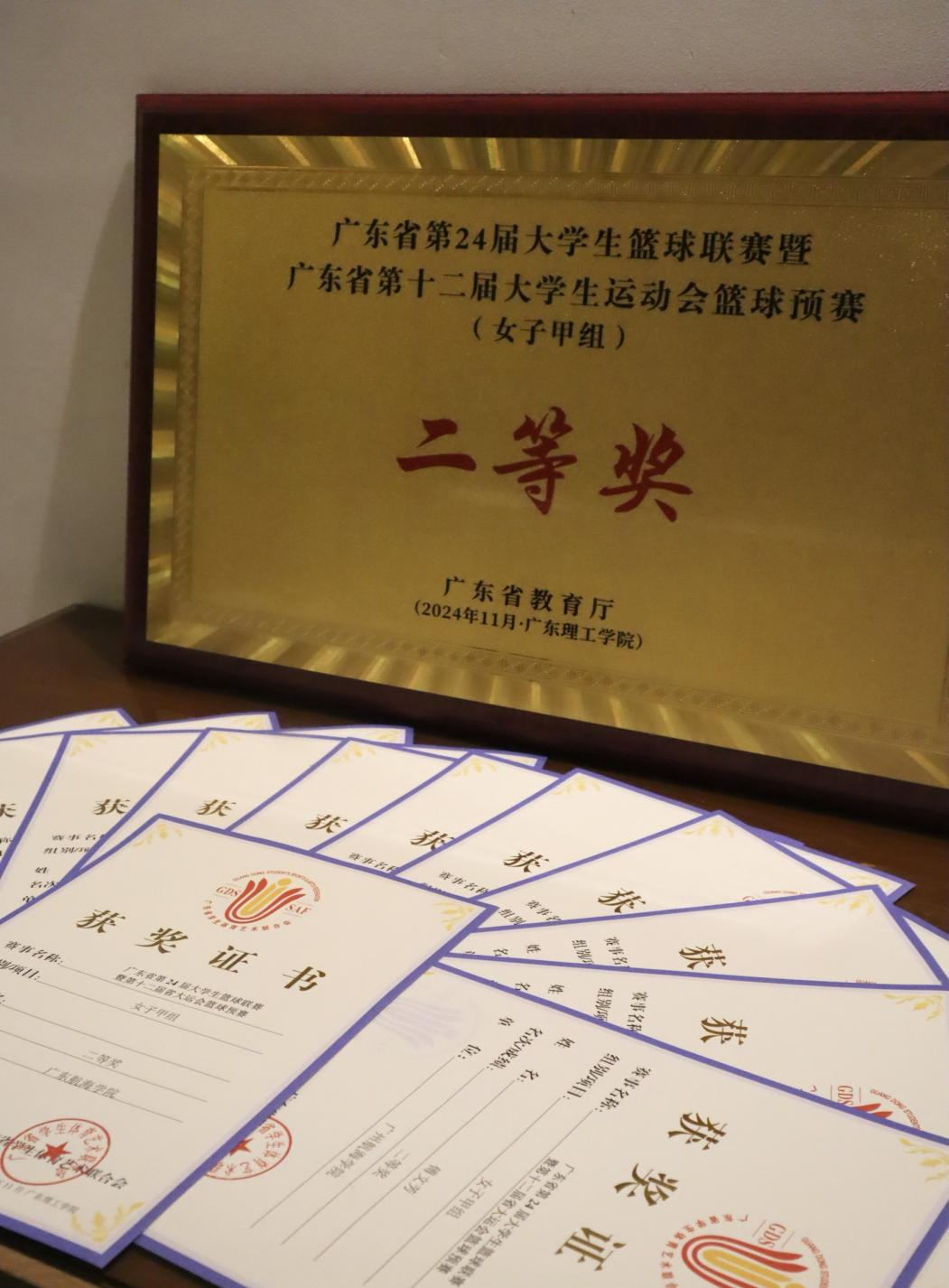 11月12日至17日,在广东省第24届大学生篮球联赛暨广东省第十二届大学生运动会篮球预赛(女子甲组)中,我校女子篮球队经过激烈比赛,接连战胜广东第二师范学院、广东药科大学、广东医科大学、广州华立学院等同组强队,最终荣获二等奖的好成绩,同时获得2025年广东省第十二届大学生运动会女子篮球项目决赛资格,成功挺进大运会决赛。