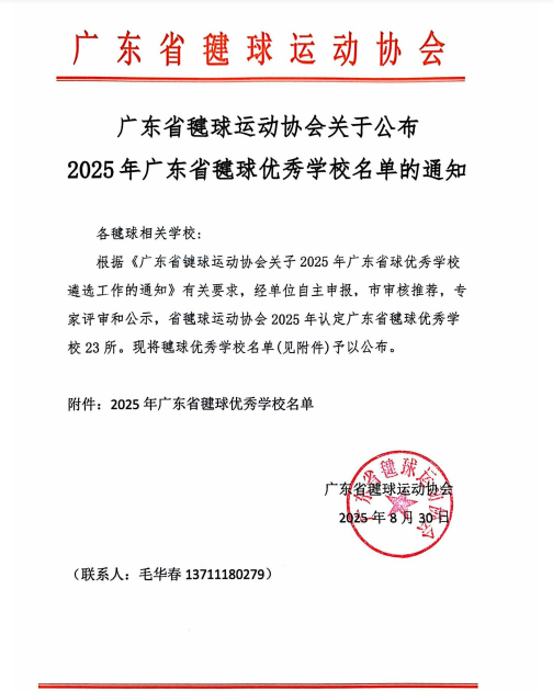 近日,广东省毽球运动协会公布2025年广东省毽球优秀学校名单,yl88858永利集团凭借在毽球运动推广、课程建设及校园体育文化方面的突出成果成功入选,成为广州市获此殊荣的六所高校之一。这一荣誉不仅是对学校近年来毽球运动发展成效的权威认可,更彰显了学校坚持“五育并举”、以特色体育活动赋能学生全面发展、助力校园文化建设的优良传统。