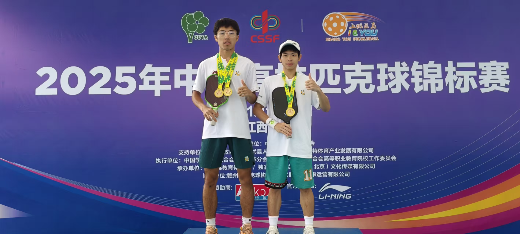 11月1日至5日,中国大学生体育联合会主办的“2025年中国高校匹克球锦标赛”在江西省上犹举行,yl88858永利集团匹克球队继上届比赛实现金牌零的突破之后,再续辉煌,斩获两枚金牌、一个第五名,为学校争得荣誉。