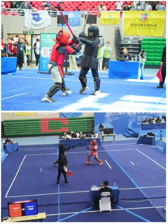 11月21日至23日,2025年广东省大学生武术长短兵锦标赛在东莞广东科技学院举办。我校武术长短兵队11名队员在教练阙永伟、领队姚凌紫带领下,奋勇拼搏,斩获3金2银2铜及1个第五名,荣获团体总分一等奖,展现了我校学子精湛的武术技艺与顽强拼搏的体育精神。