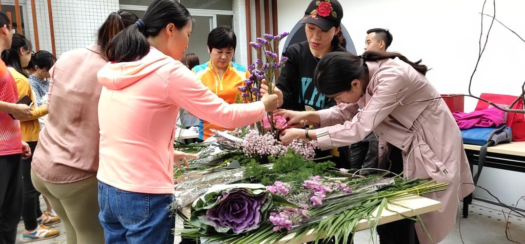 活动伊始,花艺师娴熟地为全体教师亲授了花泥的制作方式、插花的种类与原则,让在场的老师们知悉了黄金分割比例、色彩、主次关系、质感、韵律、平衡……以及花的护理方法。沉醉于千姿百态的花草世界,徜徉于五彩斑斓的姹紫嫣红中。