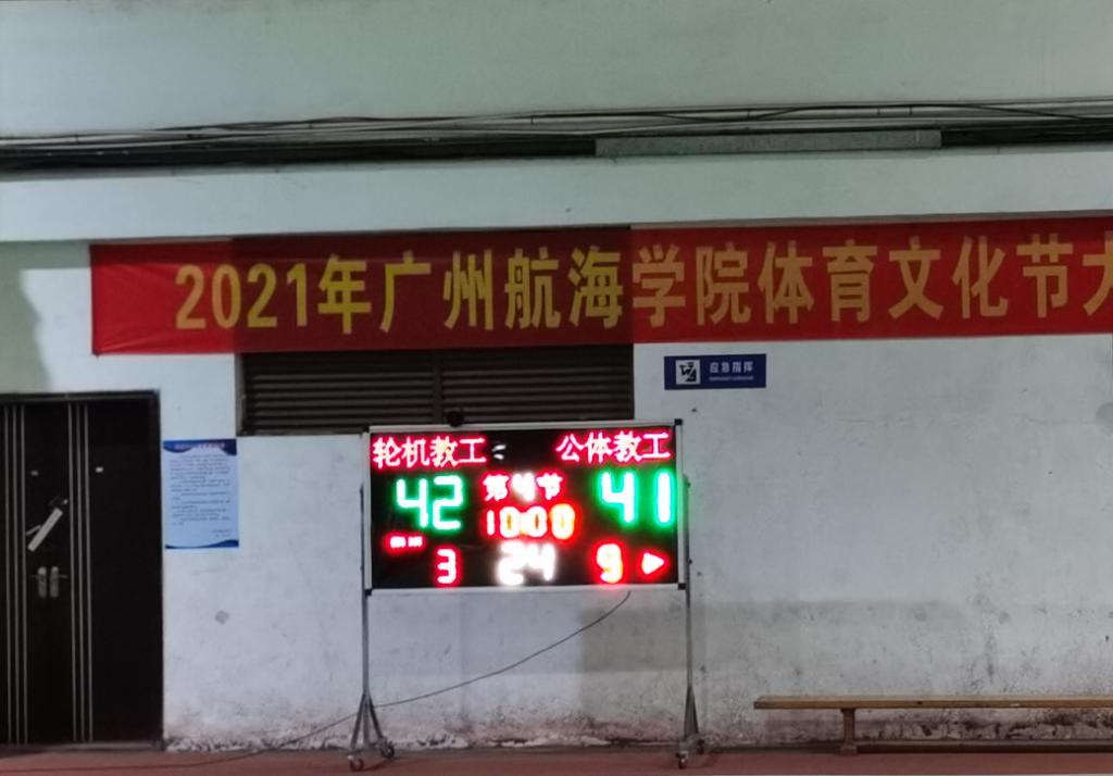 比赛序幕一拉开,公体部教工队的运动员们以默契的配合率先夺得两分,轮机教工队也亳不示弱,双方你追我赶。上半场,轮机教工队在其队长的带领下有序组织进攻,经过默契的配合,最终在半场结束时以微弱比分暂时领先。下半场比赛进入白热化阶段,两支队伍都咬紧牙关,尽力抓住机会。公体部教工队奋起直追,异军突起,将比分逐渐扳平和反超。轮机教工队及时调整战术,全力打好配合,快攻猛打,充分利用有效防守,在最后阶段以一记中投再次反超比分。直至裁判员吹响时间到的哨声,全场结束。轮机教工队以42:41的比分赢得了比赛。比赛结束时,双方握手祝贺,表明友谊第一,比赛第二。